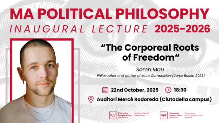 Events2025 October 22 – Inaugural Lecture SPTG/MA in Political Philosophy, UPF – Soren Mau, The Corporeal Roots of FreedomTatiana LlagunoOctober 27, 2025