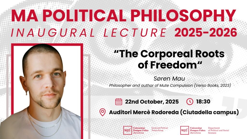 2025 October 22 – Inaugural Lecture SPTG/MA in Political Philosophy, UPF – Soren Mau, The Corporeal Roots of FreedomTatiana LlagunoOctober 27, 2025Events
